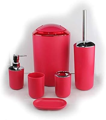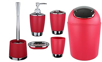 Gmmh 6tlg Badset Badezimmer Zubehör Set Seifenspender Halter Wc Bürste Badgarnitur Rot Design 3
