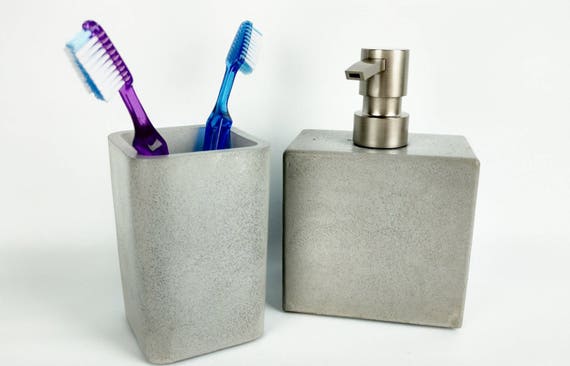 Beton Bad Zubehör Set Moderne Badezimmer Zubehör Set Seifenspender Pumpe Eitelkeit Tablett Grau Q Tip Halter Bad Set Geschenk Set Tasse