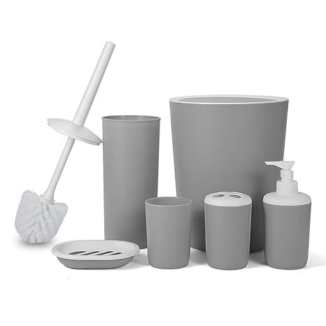 Hoomtaook 6tlg Badset Badezimmer Zubehör Set Badzubehör Bad Badezimmer Ungiftiger Pp Kunststoff Grau
