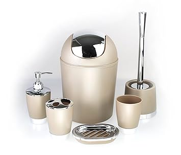 Gmmh 6tlg Badset Badezimmer Zubehör Set Seifenspender Halter Wc Bürste Badgarnitur Taupe