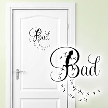 Grandora Wandtattoo Türaufkleber Bad Gecko Mit Tapsen I Schwarz Bxh 22 X 15 Cm I Badezimmer Wc Tür Sticker Aufkleber Wandsticker Wandaufkleber