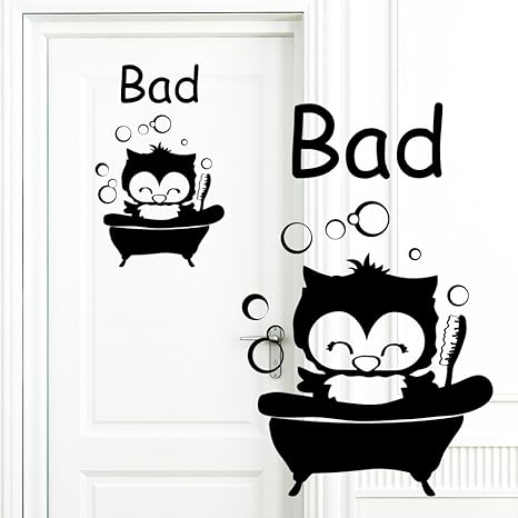 Wandtattoo Loft Wandaufkleber Eulen Türaufkleber Bad Eulenwäsche Aufkleber Für Die Tür Badezimmer 49 Farben Zur Auswahl Schwarz